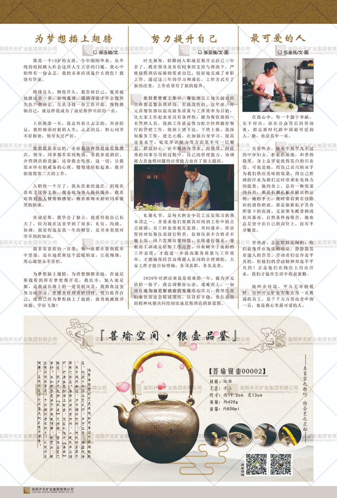 洛陽開元礦業(yè)集團(tuán)有限公司簡介洛陽開元礦業(yè)集團(tuán)有限公司,始成立于2006年,位于洛陽市開元大道269號。集團(tuán)旗下共有五余家全資子公司,業(yè)務(wù)涉及有色金屬礦山開發(fā)、礦產(chǎn)品購銷與進(jìn)出口貿(mào)易、房地產(chǎn)開發(fā)、文化藝術(shù)、企業(yè)管理與咨詢、資本投資等多個領(lǐng)域。民建河南省委委員、民建河南省委企業(yè)委副主任、民建洛陽市委委員、企業(yè)委主任、洛陽民建企業(yè)家協(xié)會會長許明月是公司創(chuàng)始人,現(xiàn)任洛陽開元礦業(yè)集團(tuán)有限公司董事長。在礦業(yè)領(lǐng)域,洛陽開元礦業(yè)集團(tuán)擁有多家實(shí)力雄厚的子公司:貴州開元礦業(yè)有限公司探、采礦權(quán)面積共11.33平方公里;興??h銅鑫礦業(yè)有限公司探礦權(quán)面積8.76平方公里,礦山資源潛力巨大;2021年,開元集團(tuán)與盧氏中科礦業(yè)有限公司開展戰(zhàn)略合作。盧氏中科礦業(yè)有限公司專注于有色金屬的浮選、加工和銷售,擁有強(qiáng)大的技術(shù)支撐平臺,是集探、采、選、冶、研為一體的中大型綜合礦業(yè)企業(yè)。目前,盧氏中科王家河1000噸選礦廠已成功投產(chǎn),雙河金礦、柳關(guān)欒盧鉛鋅礦相繼順利開工,樓房銀礦與圪老灣鉛鋅礦的深部探礦重大突破,標(biāo)志著礦山版圖取得重大進(jìn)展,為開元集團(tuán)后續(xù)發(fā)展奠定了堅(jiān)實(shí)基礎(chǔ)。在文化傳媒領(lǐng)域,洛陽市明月美術(shù)館通過豐富多樣的藝術(shù)展覽、學(xué)術(shù)研討和公共教育活動,努力打造一個集展覽、交流、教育、研究為一體的綜合性藝術(shù)平臺。此外,在金融投資領(lǐng)域,開元集團(tuán)旗下的北京明峰資本管理有限公司專注于投資具有高增長潛力的優(yōu)秀企業(yè),特別是高科技、新能源、環(huán)保等新興產(chǎn)業(yè),為客戶提供個性化的資產(chǎn)配置服務(wù)。在做好企業(yè)經(jīng)營的同時(shí),開元集團(tuán)始終不忘企業(yè)的社會責(zé)任和家國情懷,以突出的愛心公益事跡,開展了一系列公益慈善活動:“民建林”公益事業(yè)通過“思源基金”“幫幫公益”線上公益平臺,與眾多愛心人士籌措資金20余萬元;資助541名貧困大學(xué)生共計(jì)270余萬元,推進(jìn)“數(shù)字助力——河南AI人才培養(yǎng)”;捐款10萬元,馳援京津冀、黑龍江洪水地質(zhì)災(zāi)害……公司于2017年底被洛陽市慈善總會評為“洛陽慈善風(fēng)云榜——十大愛心集體”。洛陽開元礦業(yè)集團(tuán)有限公司秉承持續(xù)發(fā)展理念,憑借多年來良好的企業(yè)信譽(yù)與經(jīng)營業(yè)績,與全國多家企業(yè)建立了良好合作關(guān)系,受到社會各界的一致好評,多次榮獲“納稅標(biāo)兵”“先進(jìn)企業(yè)”“招商引資模范企業(yè)”等榮譽(yù)稱號?;赝麃頃r(shí)路,開元人勠力同心,以“闖”的精神和“創(chuàng)”的勁頭,一路披荊斬棘,踏過千山萬水;展望新未來,開元人凝心聚力,不執(zhí)于“舊”,無畏于“新”,秉承“勇于跨越,追求卓越”的企業(yè)精神,乘著國家高質(zhì)量發(fā)展新征程的東風(fēng),跨過高山,越過大海,向著集團(tuán)多元化、國際化的目標(biāo),逐夢遠(yuǎn)航,跨越前行!